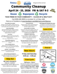 Bingen-White Salmon Community Cleanup 2026 Community Cleanup is coming Friday & Saturday, April 24-25, 9:00am-3:00pm. This is your yearly chance to clean out, repurpose or adopt unneeded items, and dispose of unwanted stuff that can’t be used again. Join us for our annual spring cleanup event brought to you by the Rotary Club of White Salmon-Bingen, Republic Services and other community partners. Community Cleanup is a fantastic way to spruce up the area and bring our community members together in a service oriented event. Volunteer for a couple hours and help make this event continue. Home pickups available for the elderly, disabled … [CLICK TO READ MORE]